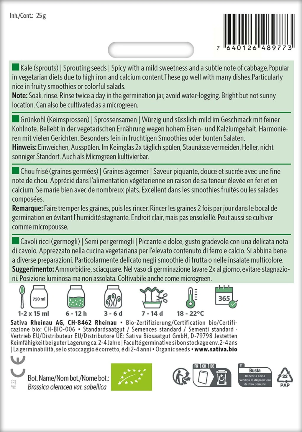 Grünkohl Keimsprossen verfügen über einen würzigen, süßlich-milden Geschmack mit feiner Kohlnote. Sie harmonieren mit vielen Gerichten, insbesondere mit vegetarischen. Auch verfeinern sie fruchtige Smoothies und bunte Salate mit ihrem einzigartigen Aroma.