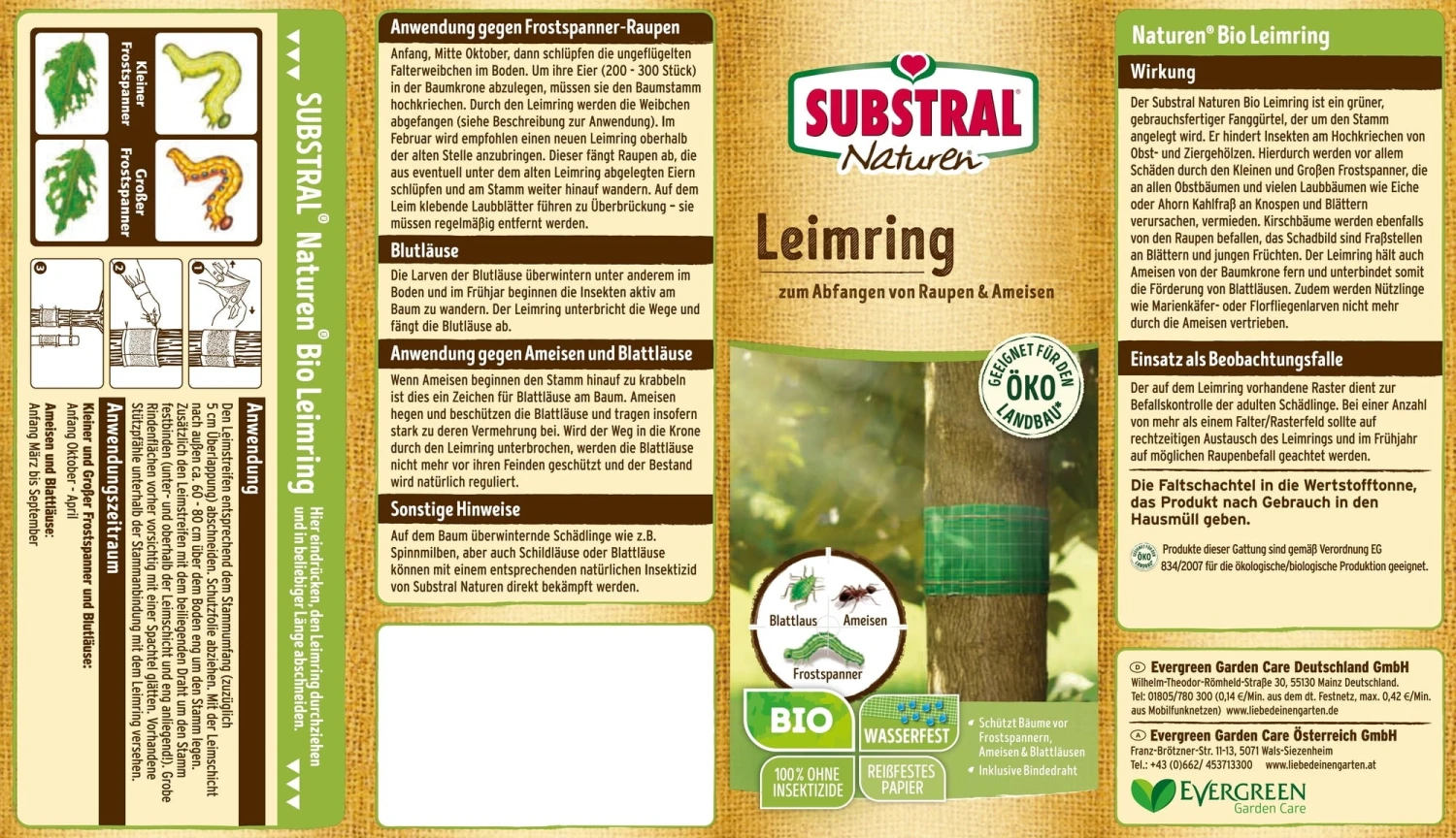 Dieser Leimring fungiert als gebrauchsfertiger Fanggürtel der Obst- und Ziergehölze vor den am Stamm hochkriechenden schädlichen Insekten schützt, er ist ganz einfach anzuwenden und wirkt phänomenal. Er schützt vor allem vor Schäden durch den Kleinen und Großen Frostspanner, die an allen Obstbäumen und vielen Laubbäumen wie Eiche, Ahorn, Linde und anderen zum Kahlfraß an Knospen und Blättern führen können. Bei Kirschen werden sogar die Früchte ausgehöhlt.