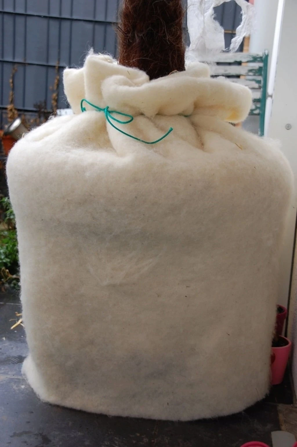 - Schafwolle als Frostschutz: Da Schafwolle optimal dämmt und atmungsaktiv ist, eignet sie sich wunderbar als Frostschutz für deine Pflanzen. Wickle das Schafwollvlies einfach um den Pflanzkübel oder die Pflanze, um die Pflanze warm zu halten und ein Durchfrieren des Wurzelballens zu verhindern. Auch als Schutz gegen Stammrisse selbst hochempfindlicher Hochstammkulturen sowie als Abdeckung von Topfpflanzen leistet Schafwollvlies hervorragende Dienste.