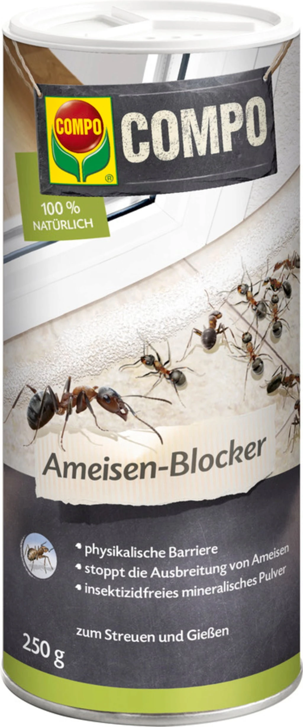 Ameisen können im Garten wie im Haus zu einer wahren Plage werden. Um unerwünschte Stellen abzuschirmen, ist der Ameisen-Blocker von COMPO eine echte Hilfe. Das natürliche Pulver auf Basis von Mineralien hindert Ameisen am Überqueren und schützt dadurch jene Bereiche, die du ameisenfrei halten möchtest.
