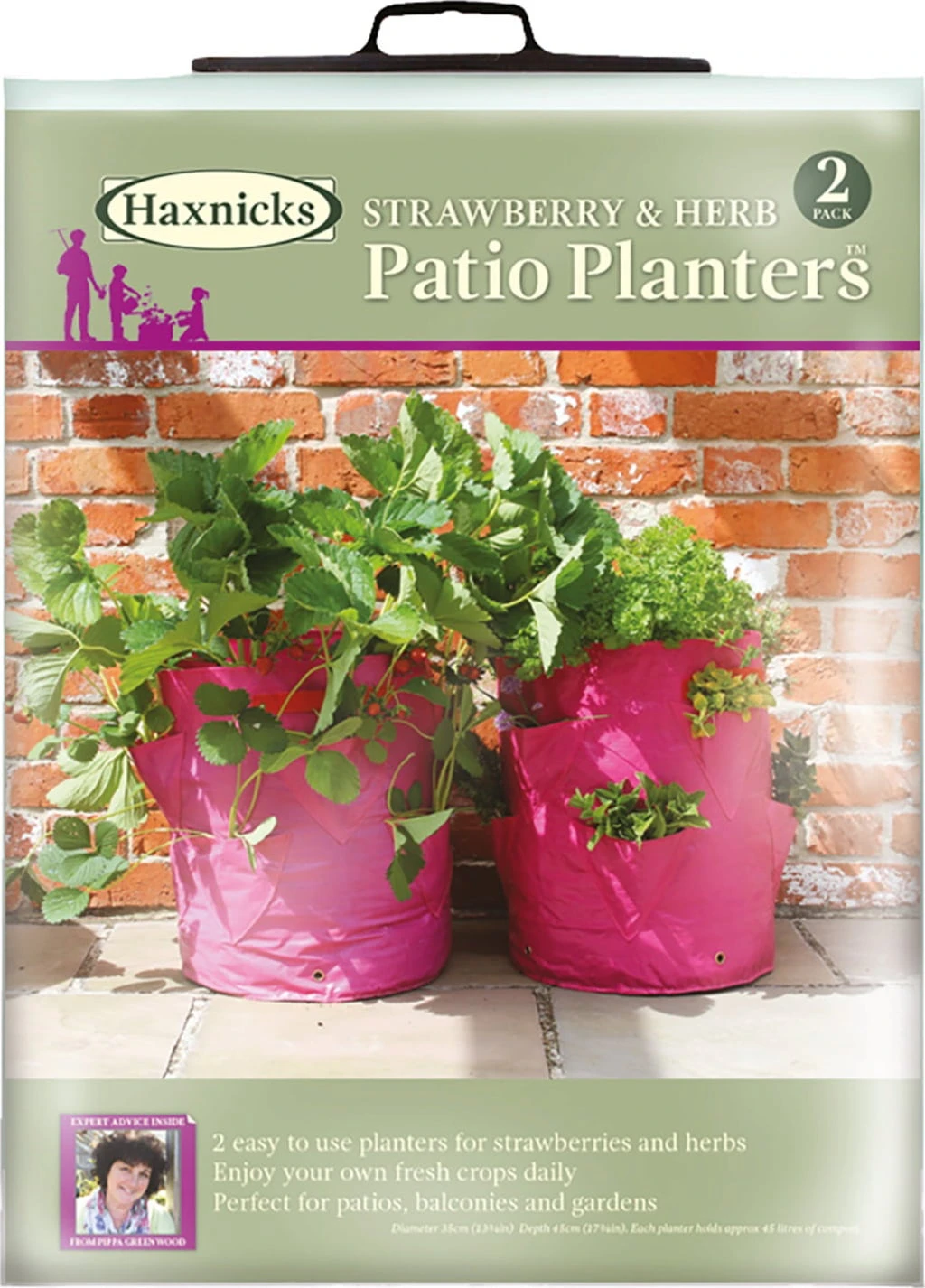 Wenn Sie wenig Platz zur Verfügung haben aber trotzdem gerne frische Erdbeeren oder Kräuter ernten möchten, sind diese Kräuterpflanztaschen genau das Richtige für Sie. Jede Pflanztasche hat Platz für 8 Erdbeer- oder Kräuterpflanzen und besteht aus robustem Polyethylen. Die seitlichen Tragegriffe machen das hin und her bewegen außerdem zum Kinderspiel.