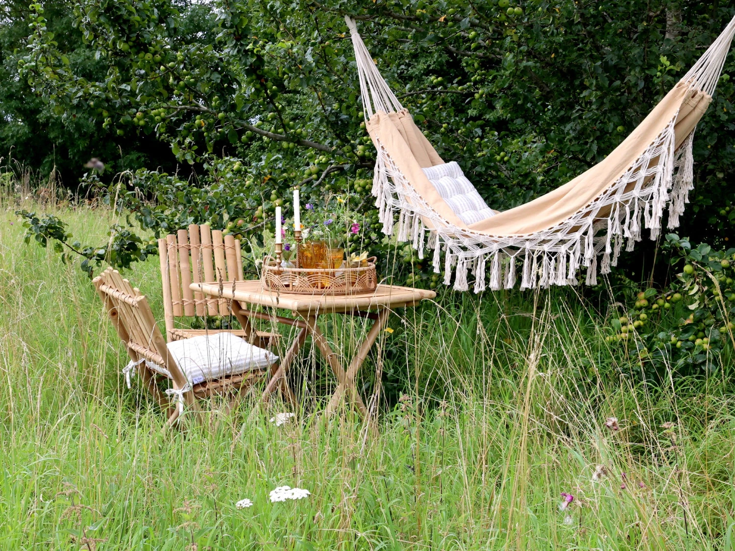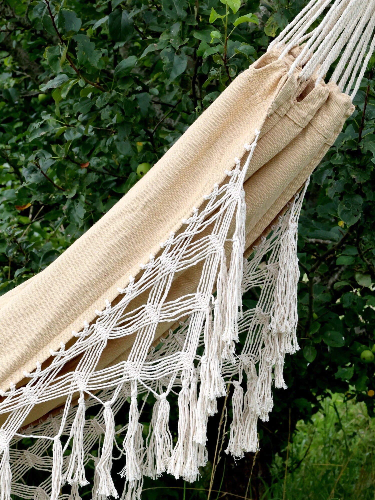 Gefertigt wurde die Hängematte von Chic Antique aus hochwertigem Leinen, das dich die Natur hautnah spüren lässt. Dekorative Fransen verleihen ihr einen Hauch von Boho-Charme, der deinen Garten oder deine Terrasse in eine stilvolle Oase verwandelt.