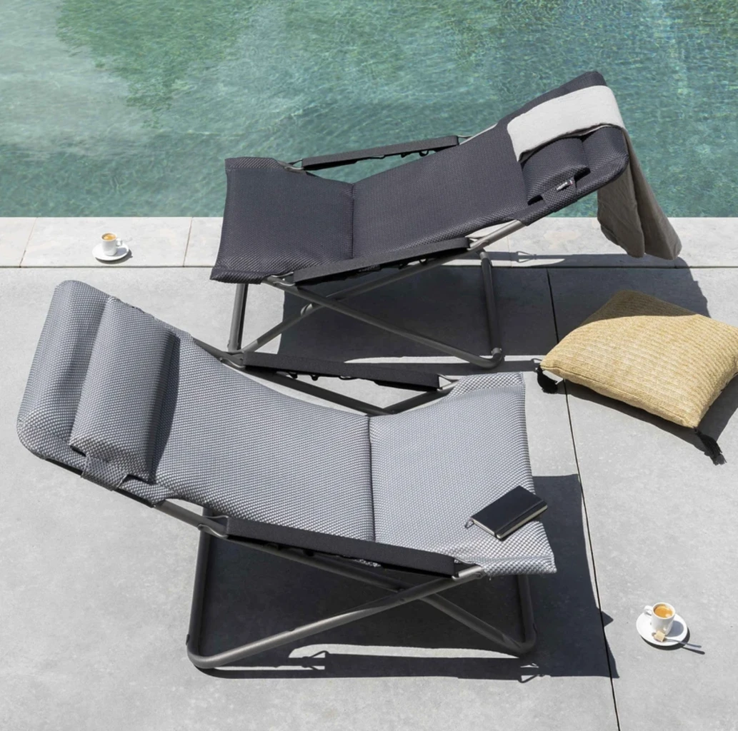Unübertroffener Liegekomfort für höchste Ansprüche. Der unvergleichlich weiche „Transabed“ mit kompaktem Klappmaß begeistert nicht nur mit seiner großen Liegefläche, sondern auch durch sein perfekt durchdachtes Design. Er kommt im vorderen Bereich ganz ohne hinderliche Querstrebe aus, so dass Komfort und Entspannung garantiert sind. Zwischen den drei verschiedenen Positionen – darunter eine Liegeposition – kann mittels eines in den Armlehnen integrierten Karabinersystems im Nu gewechselt werden.