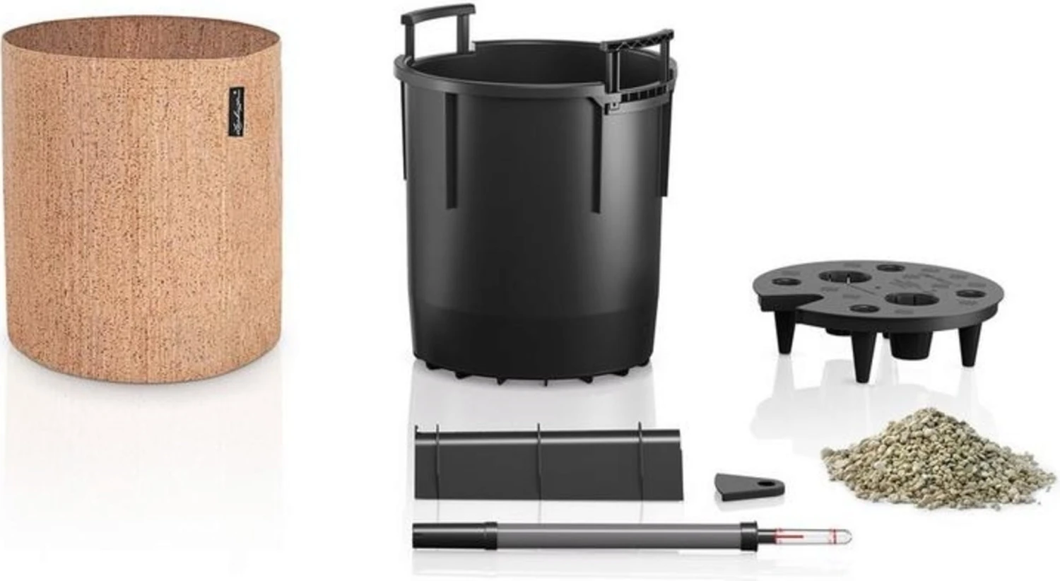 Die außergewöhnlichen Trendcover sorgen mit ihrer natürlich strukturierten Kork-Oberfläche für ein einzigartig gemütliches Wohngefühl und lassen sich flexibel kombinieren. Das Komplett-Set beinhaltet außerdem einen funktionalen Pflanzeinsatz mit cleverem Lechuza-Bewässerungssystem. Dank der praktischen Tragegriffe können die Cover einfach und unkompliziert gewechselt werden.