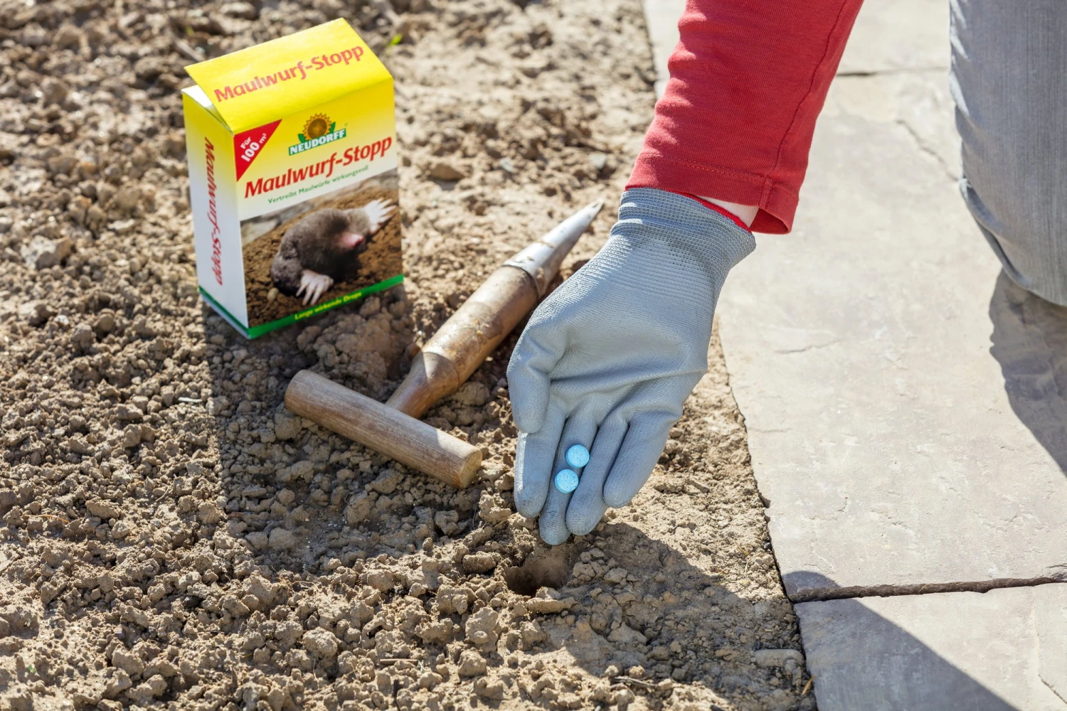 Maulwürfe machen zwar lästige Erdhügel, sind jedoch keine Schädlinge! Sie fressen im Boden lebende Engerlinge und stehen sogar unter Naturschutz. Sind ihre Gänge und Hügel jedoch unerwünscht, lassen sich die pelzigen Tierchen mit Maulwurf-Stopp ganz einfach vertreiben. Die enthaltenen Duftstoffe werden von Maulwürfen nämlich gemieden, sodass sie sich einen anderen Ort zum Wühlen und Graben suchen.
