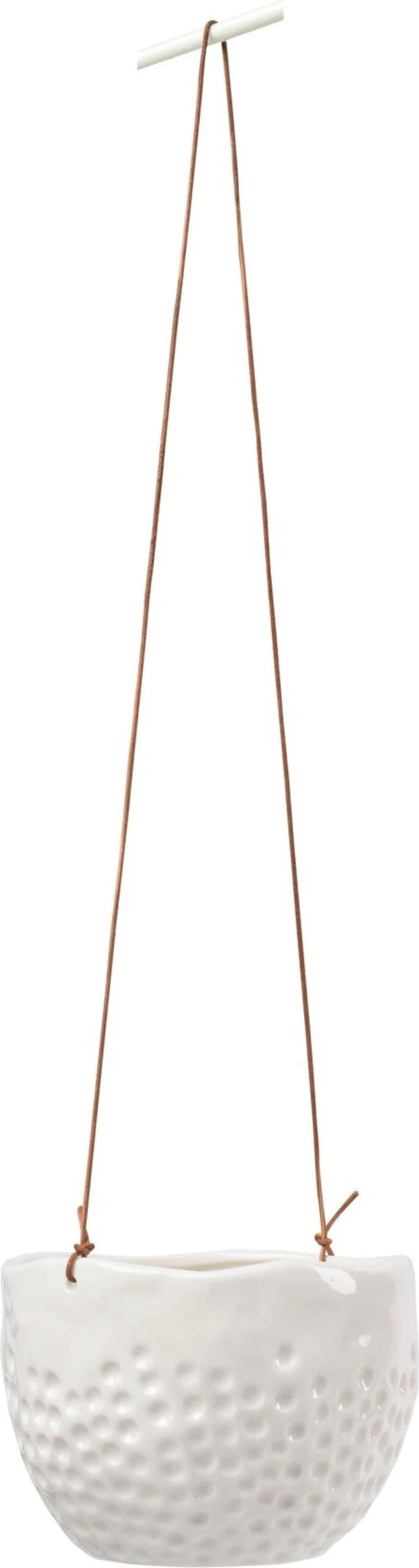 Dieser hübsche Hängeblumentopf ist ein richtiger Eyecatcher, mit dem du auch unerwartete Orte stylisch begrünen kannst. Die außergewöhnliche Oberfläche dieses Topfes im Dot-Design und der leicht gewellte Rand sorgen für das authentische Handmade-Feeling und verleihen diesem Dekorationsobjekt seinen besonderen Charakter.
