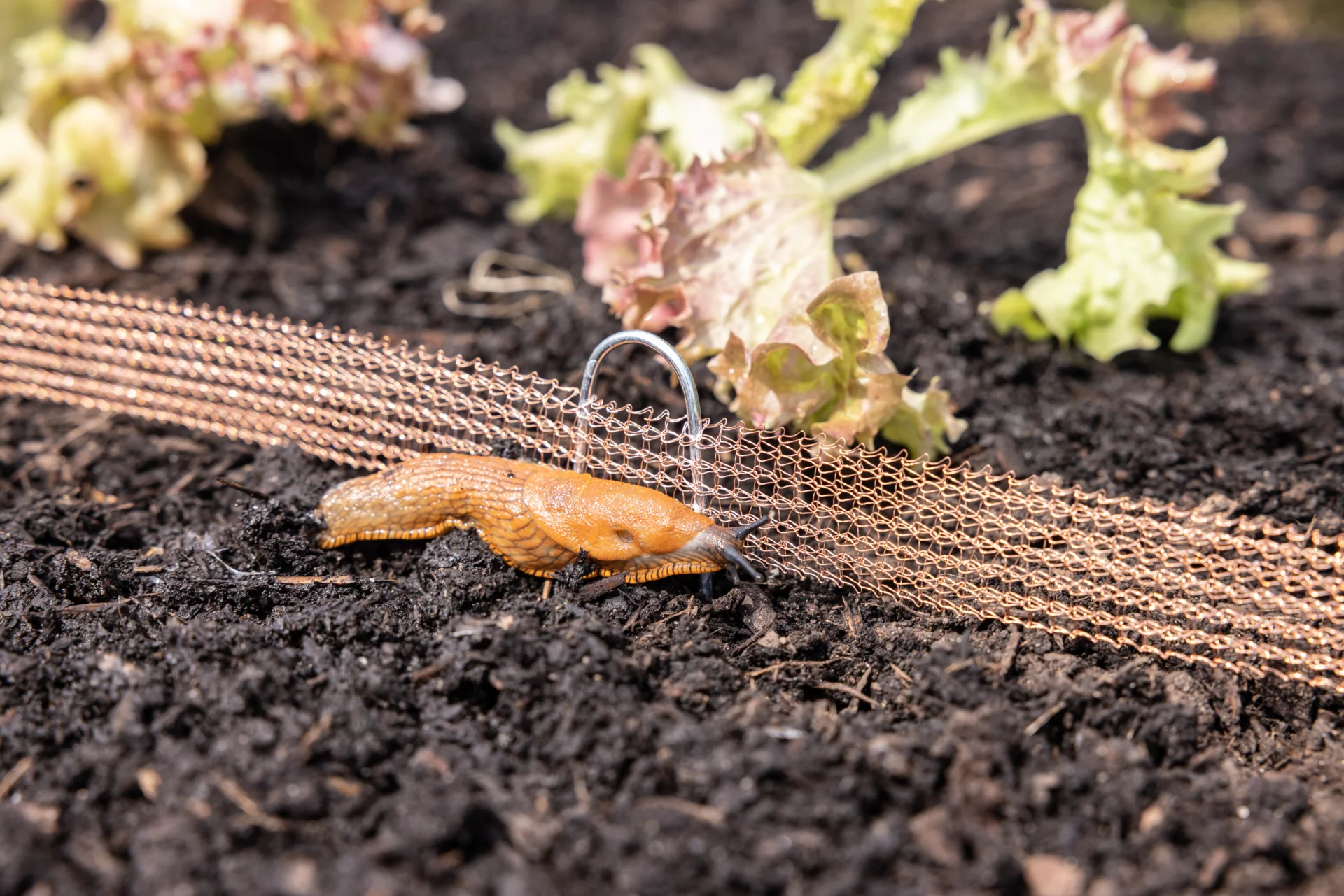 Der Schneckenzaun aus gewebtem Kupfer ist ein effektiver Schutz vor gefräßigen Schnecken. Mit den beiliegenden Erdnägeln lässt sich das Kupferband ganz einfach wie ein kleiner Zaun aufstellen. Wenn die Schnecken nun das Kupfergewebe berühren, werden Kupferionen freigesetzt, die den Schnecken ein unangenehmes Gefühl bereiten, sodass diese umkehren. Schaden nehmen sie und andere Tiere daran jedoch nicht, weshalb diese Lösung besonders tierfreundlich ist.